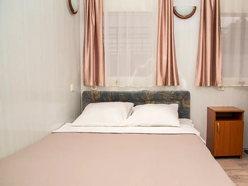 Каюты категории 1А располагаются на средней палубе, в носовой части судна, двухместные, с частичными удобствами.