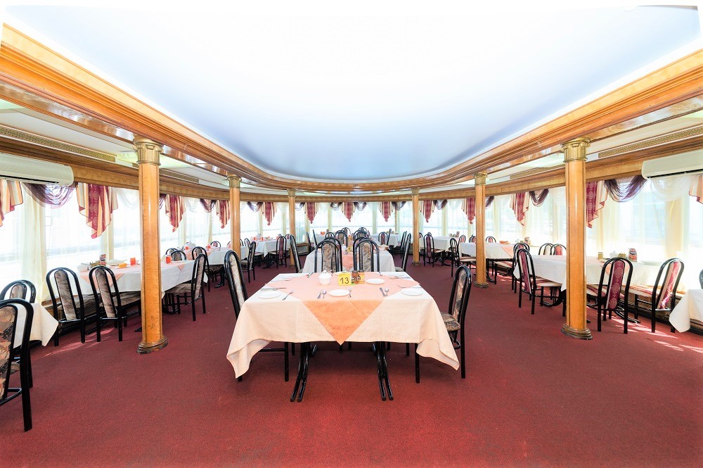В панорамных ресторанах на главной и шлюпочной палубах, организовано трехразовое питание, которое проходит в одну смену. В круизах до 5 дней и 4 ночей – по утвержденному меню. В более продолжительных рейсах – по заказной системе. Меню вывешивается ежедневно. В баре с большим выбором алкогольных и безалкогольных напитков можно провести время с близкими людьми или новыми знакомыми.