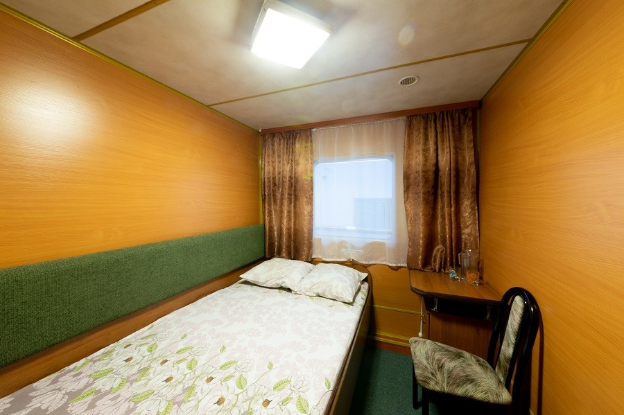 Одноместная каюта с частичными удобствами, расположенная на средней и шлюпочной палубах. В каюте: односпальное место, розетка 220 V, радио, стол, шкаф для одежды, раковина с горячей и холодной водой, обзорное окно.
