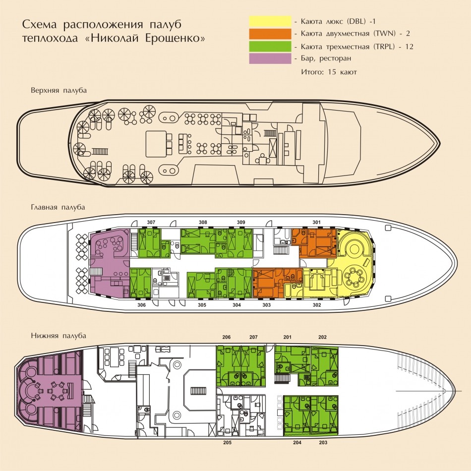 В цену тура входит размещение на борту в выбранной каюте, трехразовое питание, услуги гида-экскурсовода, Экскурсии по программе и рекреационные сборы, посещение сауны на борту, посещение бани на берегу и трансфер Иркутск-Листвянка-Иркутск. Стоимость тура для одного человека составляет от 550 000 руб. в сутки. Подробнее о скидках, ценах, расписании теплохода «Николай Ерощенко» можно узнать здесь.
