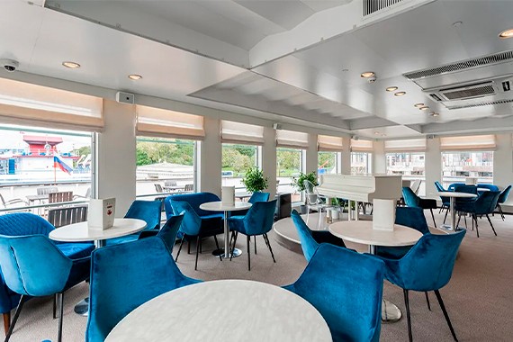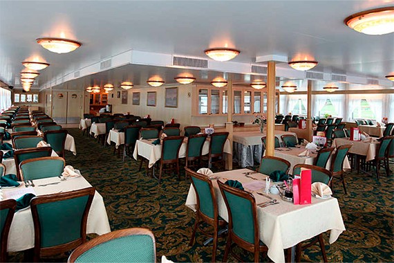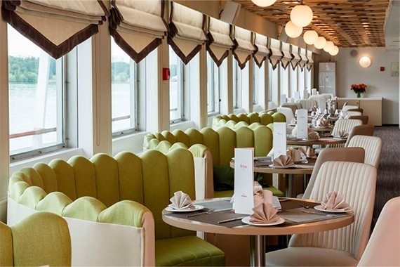Круиз на теплоходе включает 3-х разовое питание по заказному меню с элементами шведского стола: салатная станция на обед и ужин, хлебная на каждый приём пищи. Для маленьких путешественников – специальное детское меню. На каждый завтрак подается игристое, а на обед и ужин бокал вина, пива или стопка водки на ваш выбор. В круизе проводятся специальные ужины: Приветственный (с дополнительным бокалом игристого и фирменным десертом) и Капитанский (с горячим из меню, закусками и фирменным десертом). На борту работает кондитерская с десертами, сэндвичами и кофе.