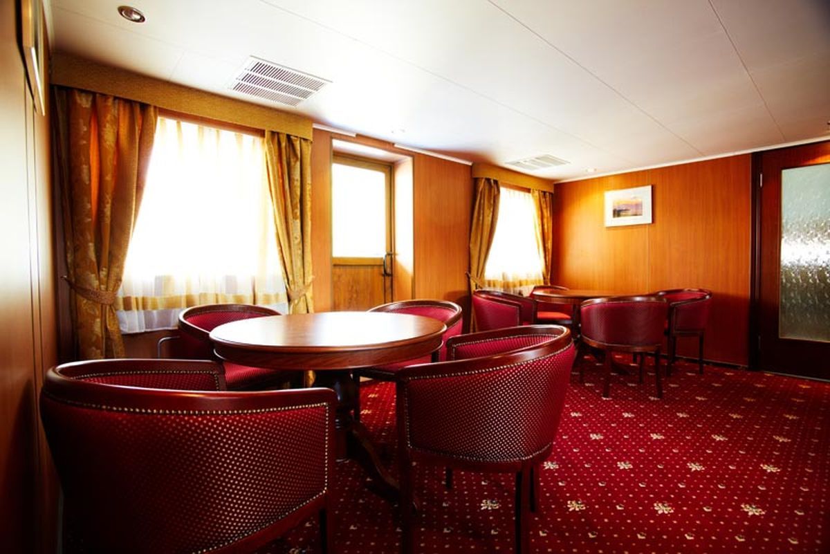 В просторном конференц-зале проводятся разнообразные мероприятия для гостей теплохода.