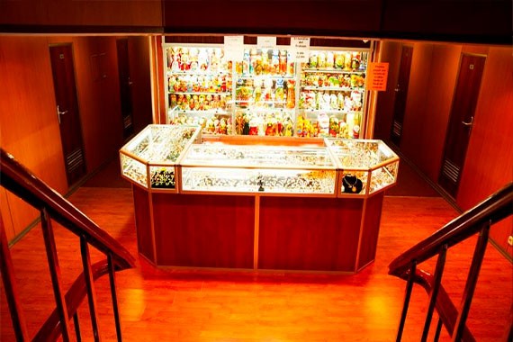 В баре можно попробовать разнообразные закуски, алкогольные и безалкогольные напитки, десерты и сладости.