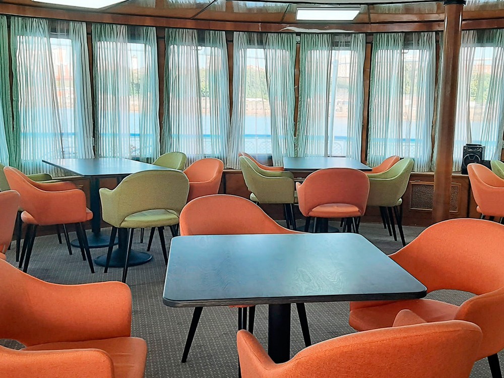 Гостей ждут концерты, мастер-классы, музыкальные вечера, викторины, конкурсы и детские мероприятия. Также доступны шезлонги на палубе для отдыха.