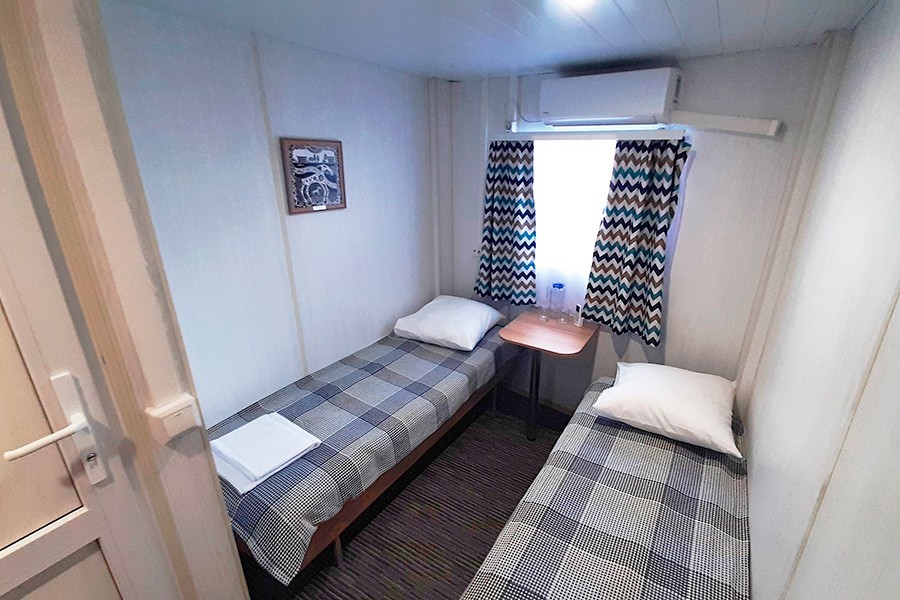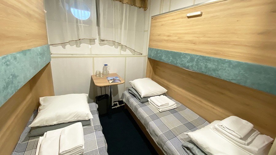 Для комфортного размещения от 1 до 4 человек на теплоходе представлены различные категории кают: 25 двухместных с возможностью размещения третьего или четвертого гостя на дополнительных местах; 16 стандартных двухместных кают; 9 четырехместных и 4 одноместные каюты.