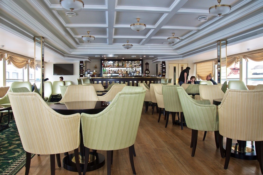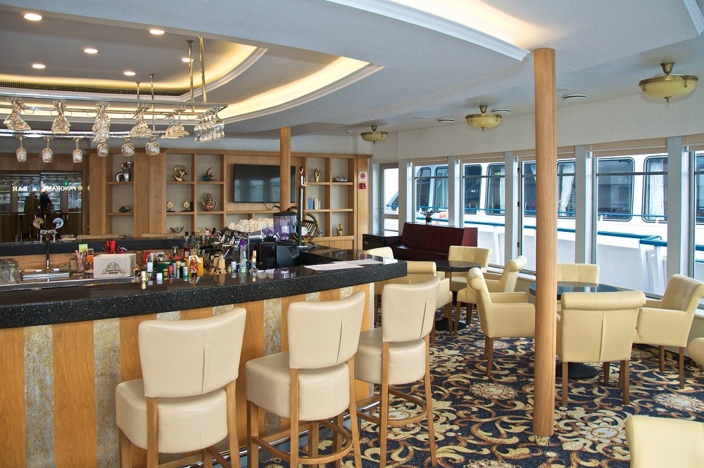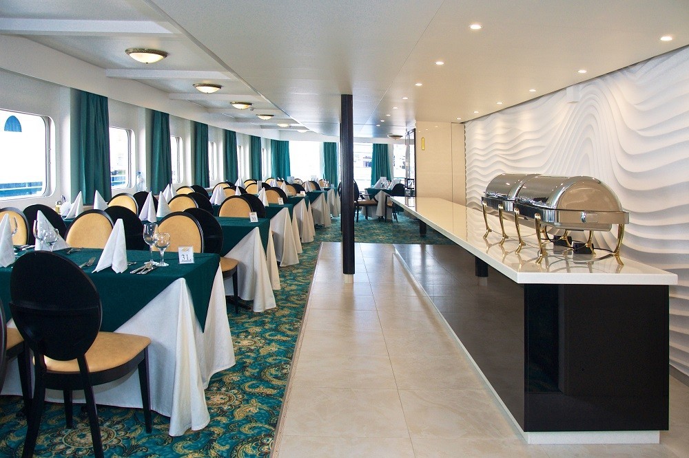 На борту есть все для приятного отдыха: ресторан и бар с панорамными видами, бар на солнечной палубе, парикмахерская, сувенирный магазин и кабинет врача.