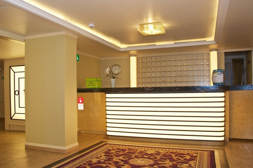 Во всех каютах: кондиционер, холодильник, телевизор, сейф, внутренний телефон, фен, стеклянные стаканы, щетка для одежды, тапочки, бутилированная вода с ежедневным пополнением, гигиенический набор.