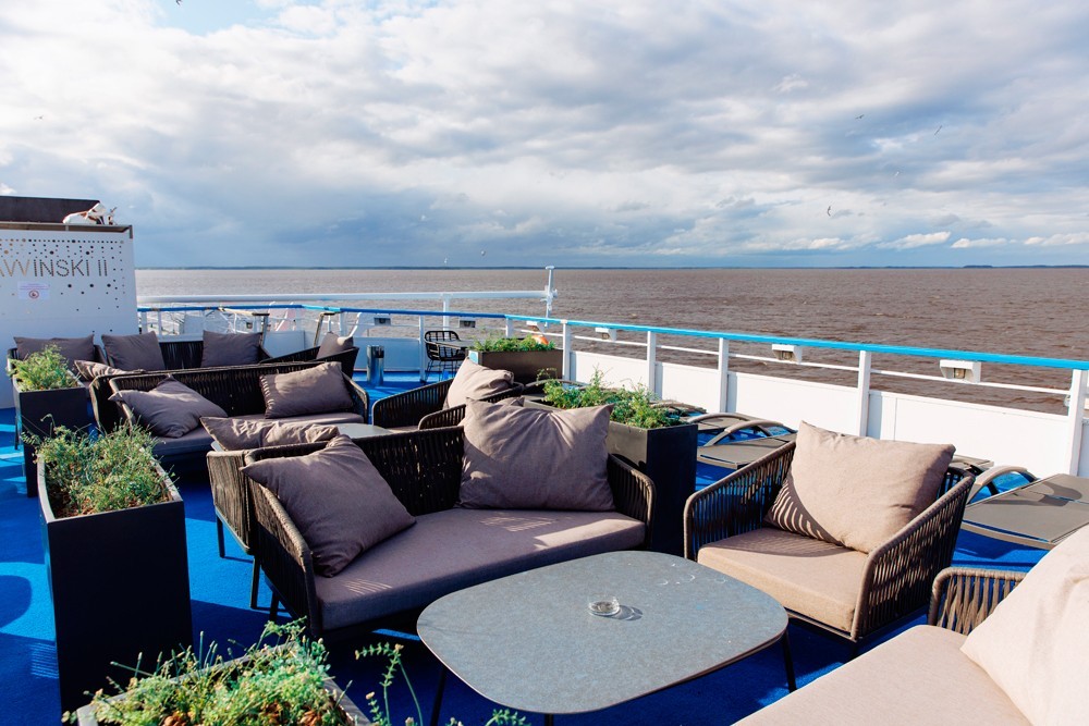 На солнечной палубе оборудованы комфортные зоны для отдыха, где гости могут наслаждаться свежим воздухом и принимать солнечные ванны.