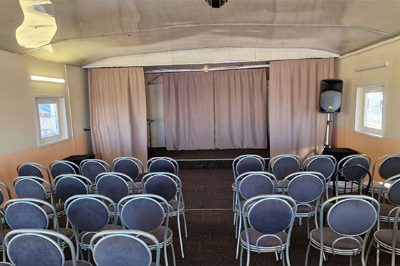 Уютная атмосфера и большой экран позволят вам насладиться просмотром любимых фильмов в комфортных условиях. Киноконцертный зал также предназначен для проведения концертов живой музыки, тематических вечеров, викторин, танцев и других развлекательных мероприятий.